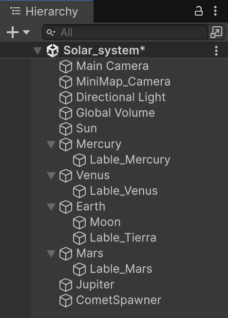This project is a functional 3D simulation of the Solar System developed as part of the Unity Learning Assignment. It demonstrates the implementation of core game engine principles, including object hierarchy, material application, custom C# scripting for behaviors, and multi-camera systems.